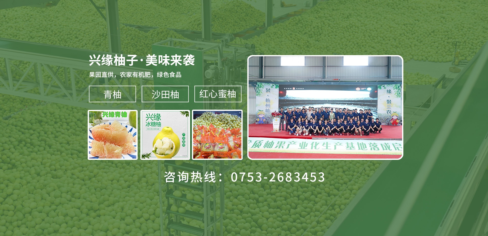 公司拥有标准金柚园基地2100亩,泰国青柚700亩,核心果农种植基地6500亩,加工厂区面积约2万平方米,有10条全自动柚果分级包装系统,日均加工柚果300多吨。